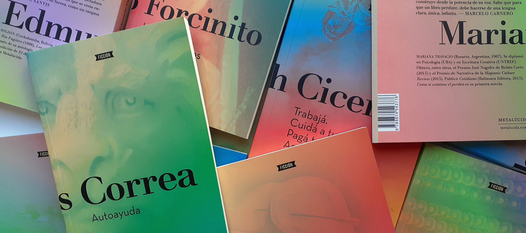 Acompañando una transformación de la comunicación de la editorial realizamos un nuevo diseño para Metalúcida Editora, tapas impresas a 4 colores más laca sectorizada. El uso de tipografías a gran tamaño y los elementos gráficos cruzando tapa, lomo y contratapa amplian el campo visual de la cubierta proponiendo un objeto potente y pregnante.